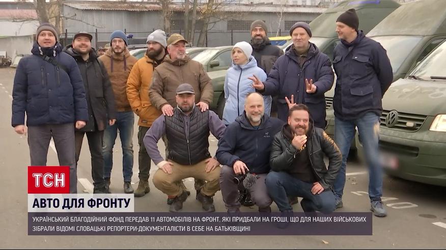 Український благодійний фонд передав 11 автомобілів на фронт. Придбали їх на гроші, які для наших військових зібрали відомі словацькі репортери-документалісти в себе на батьківщині. Із перших днів повномасштабного вторгнення вони фільмують злочини росіян у найгарячіших точках лінії фронту. І навіть самі потрапляли під обстріли окупантів. Пів року тому вони оголосили збір коштів у Словаччині для українських військових. Тоді зібрали 100 тисяч євро, на які український благодійний фонд придбав 10 машин. Цього разу, спільно з українським фондом, удалося наскладати вдвічі більше. Як авто везли на передову, та кому передали – дивіться в ТСН!