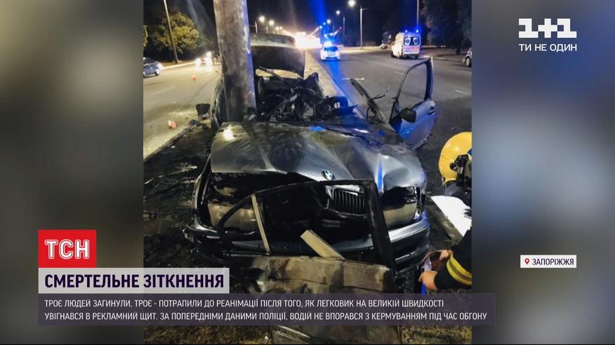 Троє людей загинули у ДТП в Запоріжжі. Ще троє у реанімації. Там проти ночі "БМВ" на єврономерах на великій швидкості вилетіла на розділову смугу та протаранила рекламний щит. Заблоковані в салоні люди згоріли живцем, вибратися із салону вдалося лише половині пасажирів. За інформацією ТСН, усі постраждалі - громадяни Марокко, які навчаються у Запорізькому державному медуніверситеті на стоматологічному факультеті. У виші цю інформацію підтвердили. Зараз там намагаються зв'язатися із рідними загиблих студентів. Детальніше – у сюжеті.