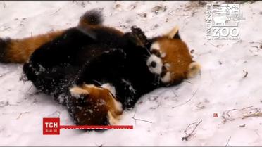 Кучугури утворились у вольєрах і тварини розважалися, як малі діти. Панди радо вовтузились одне з одним на землі, а гепарди, попри холод, залюбки бігали за м'ячиком. Для пінгвінів така погода була більш звичною, але й вони радісно плескали крилами.