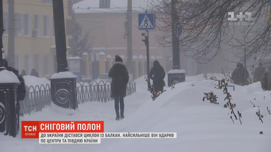 До України дістався циклон із Балкан. Найсильніше він ударив по центру й півдню країни. Кількакілометровий затор через негоду утворився на трасі Одеса-Київ. На Вінниччині через негоду скасували половину автобусних рейсів. Сніговий покрив у деяких областях сягає вже півметра.