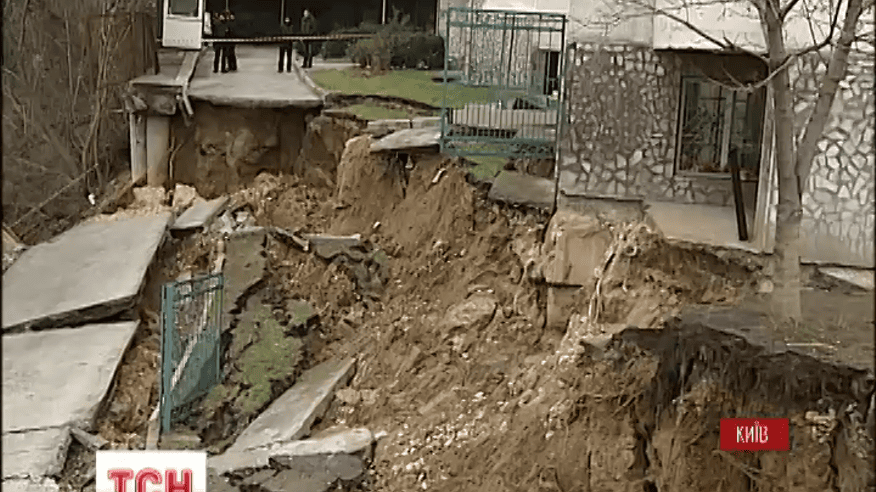 Де першого грудня стався зсув ґрунту. Напередодні спеціалізоване управління протизсувних робіт закінчило досліджувати опори, які підпирали будинок. Три дні тому вони впали на гаражі. Один із під’їздів будови - завис над прірвою. Фахівці управління зазначають - опори були спроектовані з порушеннями, виконані з браком.