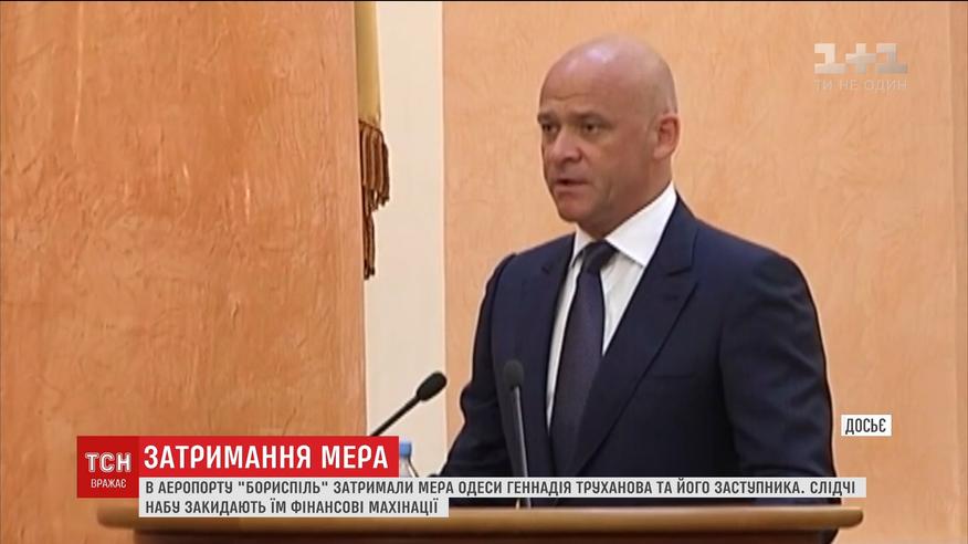 Геннадія Труханова, а також його заступника Павла Вугельмана, затримали в столичному аеропорту "Бориспіль". Про це повідомляють в Антикорупційному бюро. Очільнику Одеси вже оголосили про підозру у здійснення фінансових злочинів. Серед звинувачених - і декілька його підлеглих.