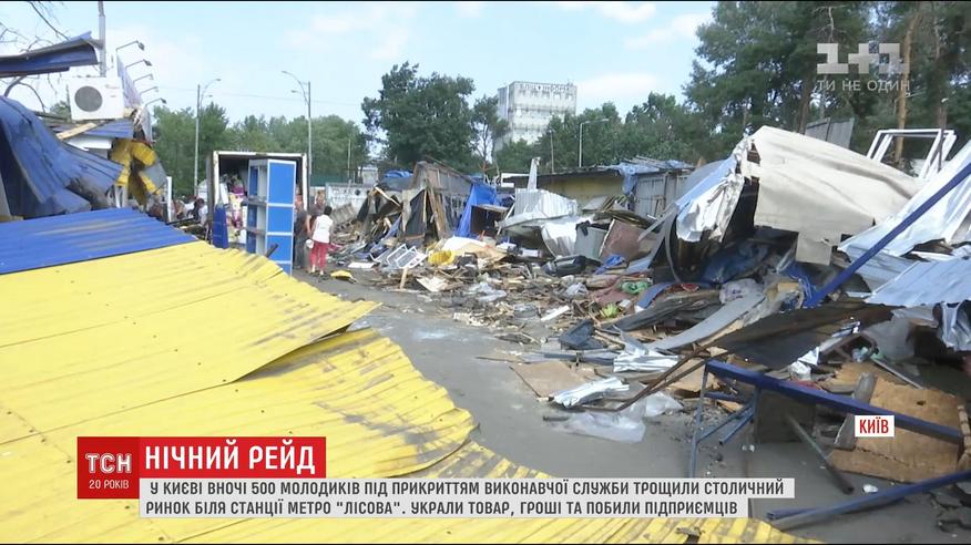 Сотні молодиків вночі потрощили бульдозерами та пограбували магазини біля метро Лісова