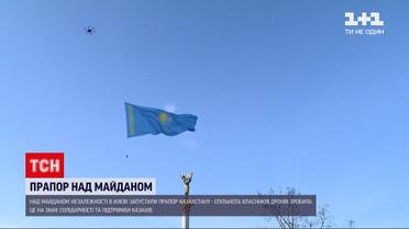 Тридцять два квадратних метри блакитно-жовтого прапора Казахстану пролетіли сьогодні в небі над Києвом. Спільнота власників дронів зробила це на знак солідарності та підтримки громадян Казахстану. Спеціальний дрон підняв гігантський прапор над Майданом Незалежності та Алеєю героїв "Небесної сотні". Організатори запевняють - місце обирали символічне, щоби показати, наскільки події, що відбуваються в Казахстані, близькі до Революції гідності.