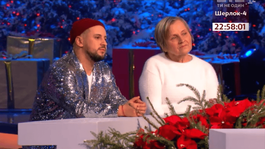 Бабуся співака, що приїхала спеціально з Луцька до Києва на карнавал, показала дитячі фотографії Дмитра та подарувала Катерині Осадчій власноруч зроблену зимову шапку.