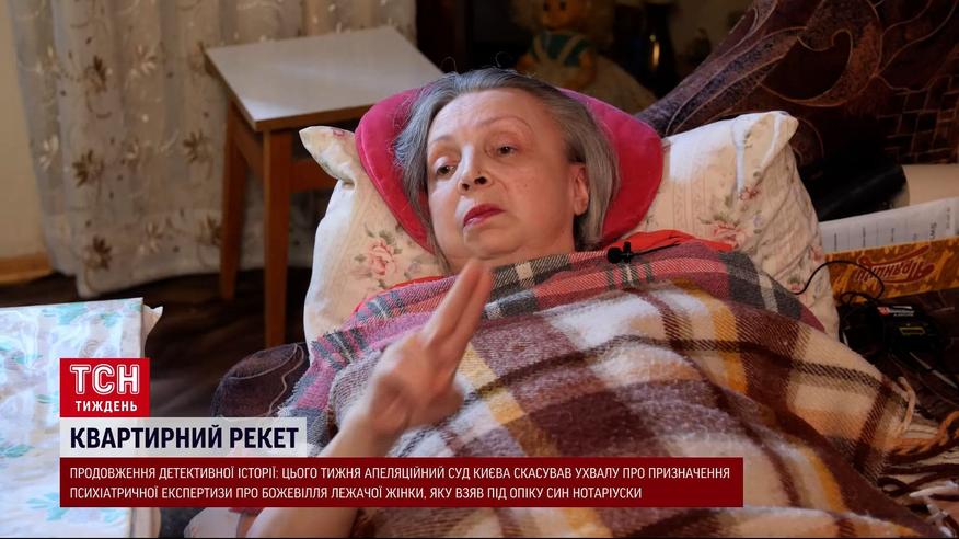 У минулому випуску ТСН.Тижня журналістка Ніна Грушецька показала історію, де в детективний клубок сплелися всі жахачки. І чорні нотаріуси, і підкуплені психіатри, і підступні опікуни, і безсила влада. Але найогидніше, що їхня жертва - це немічна та самотня жінка, у якої є цінна квартира. І ось, київська нотаріуска та її син, який раптом став опікуном, знайшли десь психіатра. І провернули підступну комбінацію. Лікар зробив довідку про божевілля лежачої жінки. Цього тижня стало відомо, що Апеляційний суд міста Києва скасував про призначення психіатричної експертизи. Адвокат потерпілої каже, що справу завчасно виграли. Деталі – в ТСН.Тижні.