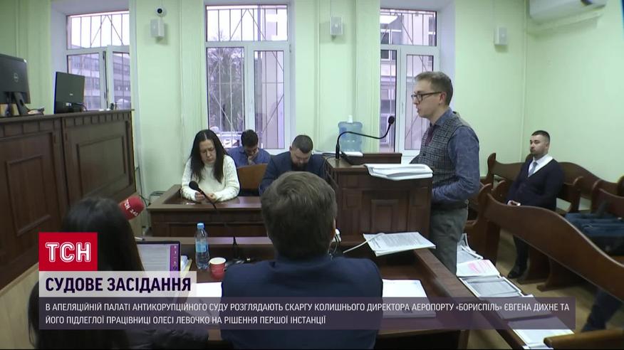 Злочину немає, тому що вартість оренди двох приміщень в аеропорту "Бориспіль" не була занижена. А слідство використало хибну методику підрахунку цієї вартості. Це чотири години поспіль доводили адвокати колишніх директора аеропорту "Бориспіль" Євгена Дихне та його підлеглої працівниці Олесі Левочко. Наразі в апеляційній палаті антикорупційного суду розглядають їх скаргу на рішення першої інстанції. Нагадаємо, їх, минулої весни визнали винними у корупції і засудили на п'ять і чотири роки відповідно. Слідство переконало суддю, що у 2016 році підозрювані здали без конкурсу і за заниженою ціною приміщення під ресторан і газетну ятку в залі очікування аеропорту Бориспіль. Деталі – в ТСН.