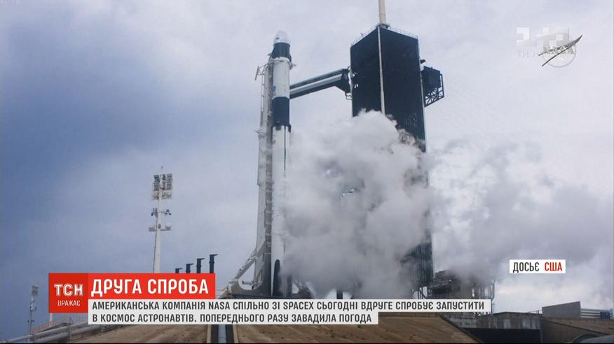 Американська компанія NASA спільно з компанією Ілона Маска SpaceX знову спробують запустити на орбіту астронавтів у штаті Флорида. Перший запуск у середу скасували за 16 хвилин до старту через несприятливу погоду.