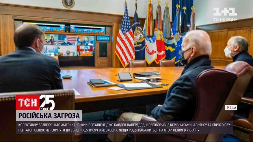 Міністерство оборони США збільшило рівень готовності 8,5 тисяч військових. І обіцяє їх швидко дислокувати у Східну Європу, якщо Росія наважиться на вторгнення в Україну. Колективну безпеку НАТО американський президент Джо Байден напередодні обговорив із керівниками Альянсу та Євросоюзу.