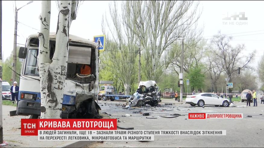 Восьмеро загиблих і 18 травмованих. О 6 ранку в самому середмісті на перехресті зіштовхнулися два автобуси та легковик. Останній - за словами свідків - намагався проскочити на жовте світло і врізався в міську маршрутку. Мікроавтобус відкинуло на зустрічну смугу, де його вдарив інший – більший, - що перевозив робітників металургійного підприємства. Водій "Мазди" відбувся лише забиттями.