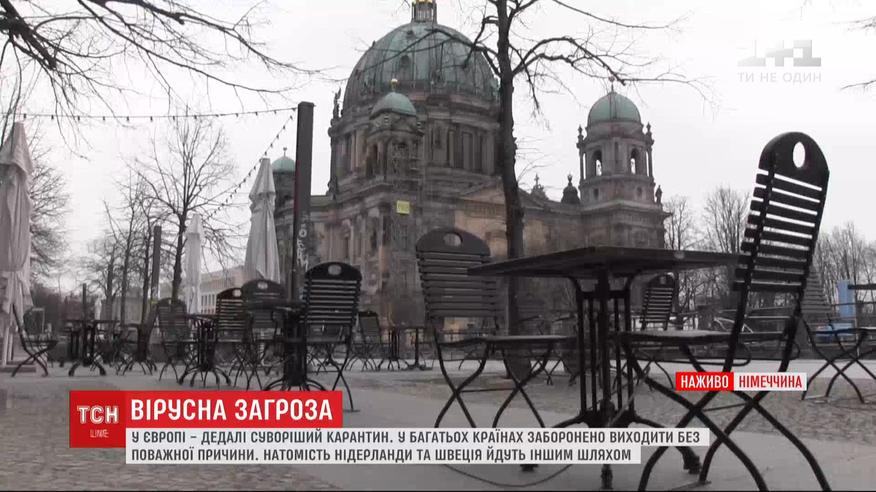 У європейських країнах запроваджують дедалі суворіші заходи. Заборона виходити з домівки без поважної причини вже діє в Бельгії, Франції, Іспанії та Італії. Схожі заходи очікують у Німеччині. Натомість Нідерланди не забороняють відвідини родичів і друзів. Більше про коронавірус