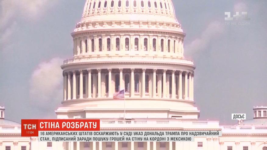 Його Дональд Трамп оголосив минулого тижня, аби отримати більше повноважень і знайти в обхід парламенту гроші на будівництво стіни на кордоні з Мексикою. Раніше два колективних позови проти Трампа зареєстрували у Вашингтоні, нині - спільний від 16 штатів - у суді Каліфорнії.