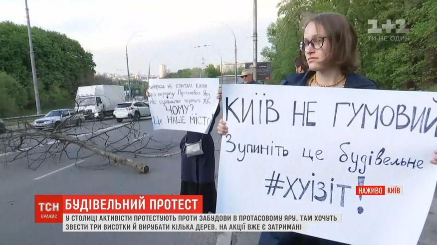 Димові шашки, петарди та кілька затриманих. У Протасовому Яру планують вирубати десятки дерев та звести три висотки. У що перетворилась акція, бачила ТСН.