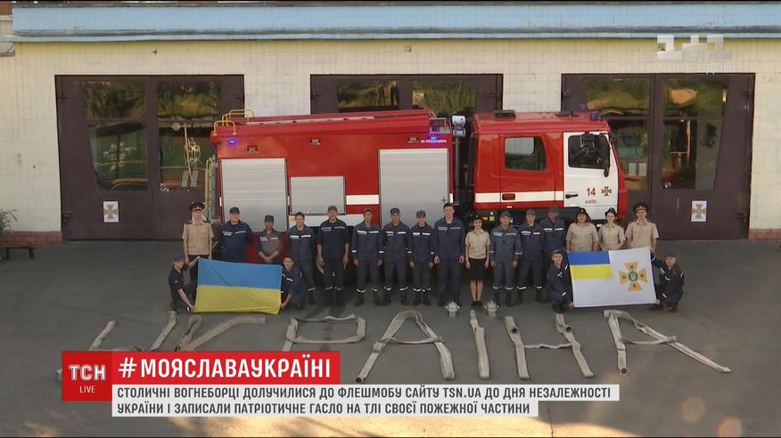 Флешмоб від сайту ТСН.ua присвячений Дню незалежності і має назву "Моя слава Україні". Рано-вранці подільські рятувальники з пожежних рукавів виклали назву Батьківщини. Після чого - вишикувалися біля машини і вигукнули: "Слава Україні".
