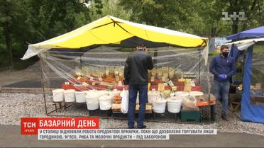 У різних районах столиці, за визначеним столичною владою графіком, відкрили виїзні базари просто неба. Покупцям вимірюють температуру й нагадують про дотримання дистанції. На ятках - дезінфектори. Покупців – небагато, як і продавців.