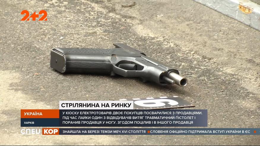 Вже відомо, що покупці посварилися з продавцями у кіоску електротоварів. Спочатку просто лаялися та згодом один з відвідувачів ринку дістав травматичний пістолет й поцілив продавцеві у ногу. Стрілець кинувся навтьоки, а за ним навздогін помчали колеги пораненого. Під час тої гонитви нападники відстрілювались і ще один чоловік дістав травматичну кулю у голову. У якому стані поранені та що так розгнівало покупців, дивіться у сюжеті. Повні випуски дивіться на 1+1 video