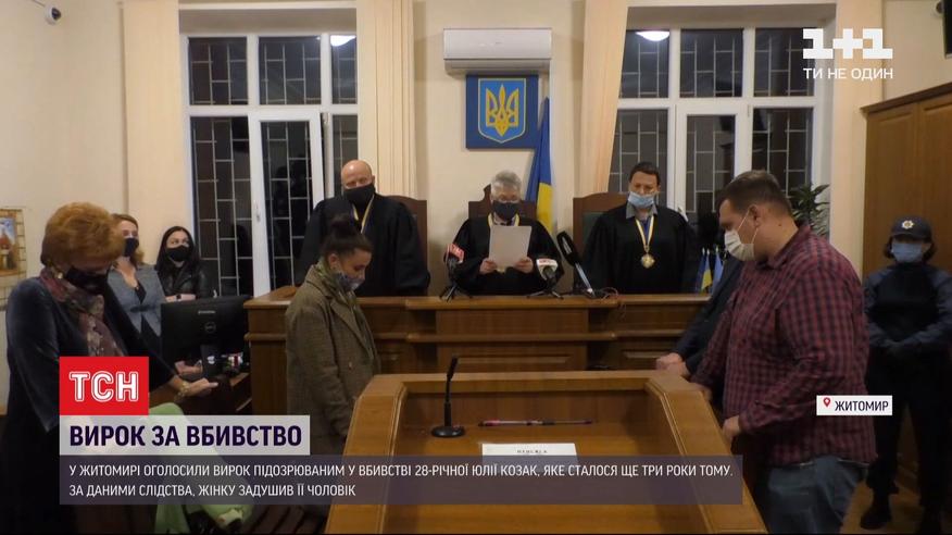 10 років в'язниці за вбивство дружини. Житомирський суд урешті оголосив вирок у справі про вбивство Юлії Козак. У вбивстві 28-річної жінки, що сталося три роки тому, звинувачували чоловіка та його рідну сестру. Сестру суд виправдав. Детальніше – у сюжеті.