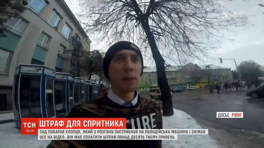 У Рівному суд покарав хлопця, який у січні зстрибнув на поліційну автівку, пострибав по даху та втік. Усе знімав на відео, яке виклав у Мережу. Вже за кілька днів 20-річного порушника копи таки знайшли, а суд покарав штрафом - у 10200 гривень.