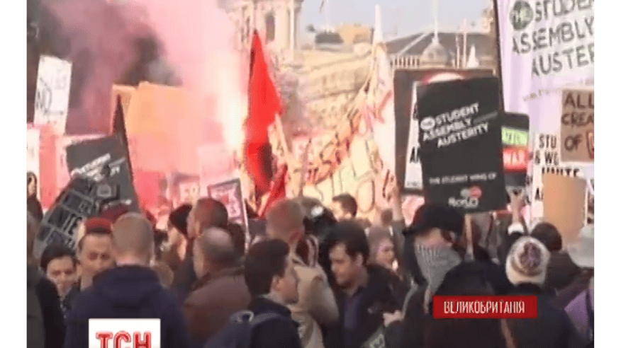 Троє правоохоронців отримали дрібні поранення, затримані одинадцять людей. Тисячі студентів вийшли на вулиці британської столиці протестувати проти скорочення бюджету на освіту.