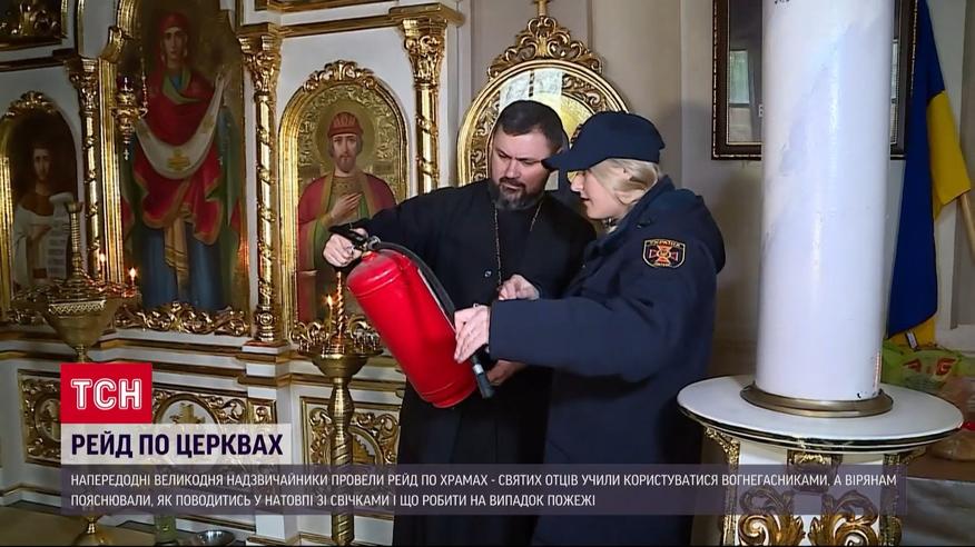 Школа рятувальників в одеських церквах. Напередодні Великодня надзвичайники провели рейд по храмах, святих отців учили користуватися вогнегасниками. А вірянам пояснювали як поводитись у натовпі зі свічками і що робити на випадок пожежі. За статистикою, горить у храмах найчастіше на Різдво та Пасху. За останні 5 років у регіоні під час служіння спалахувало 8 разів, кілька людей тоді дістали опіки, 1 загинула. Тож нині рятувальники перевіряють уміння священників користуватися вогнегасниками.