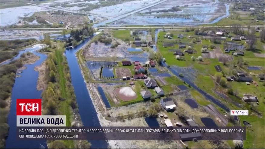 Велика вода тримається на Волині. За два тижні площі затоплених територій збільшилися вдвічі. Зараз це 18 тисяч гектарів - залиті переважно сільськогосподарські угіддя та присадибні ділянки. Місцеві кажуть, такого паводку не було 30 років. Майже 500 обійсть постраждали від повені на Кіровоградщині. Здебільшого це дачі на берегах Дніпра та його приток. Підрозділи ДСНС - напоготові, оскільки, за прогнозами, рівень води в Дніпрі ще може піднятися.