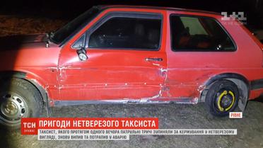 У Рівному різні патрулі протягом кількох годин по черзі зупиняли того самого таксиста напідпитку. І з кожним разом драгер показував усе більше алкоголю в його крові. На таксиста поліція тричі складала протоколи та брала зобов'язання не сідати за кермо. Цієї ночі таксист знову випив і знову поїхав кататися. І цього разу неподалік Рівного зіткнувся з іншим легковиком.
