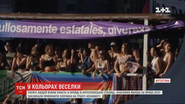 Марш за права ЛГБТ провели у центрі Буенос-Айреса, учасники несли прапори, танцювали і розважалися. Аргентина першою з країн Латинської Америки легалізувала одностатеві шлюби ще у 2010 році, а за два роки дала людям змогу змінювати стать юридично чи фізично.