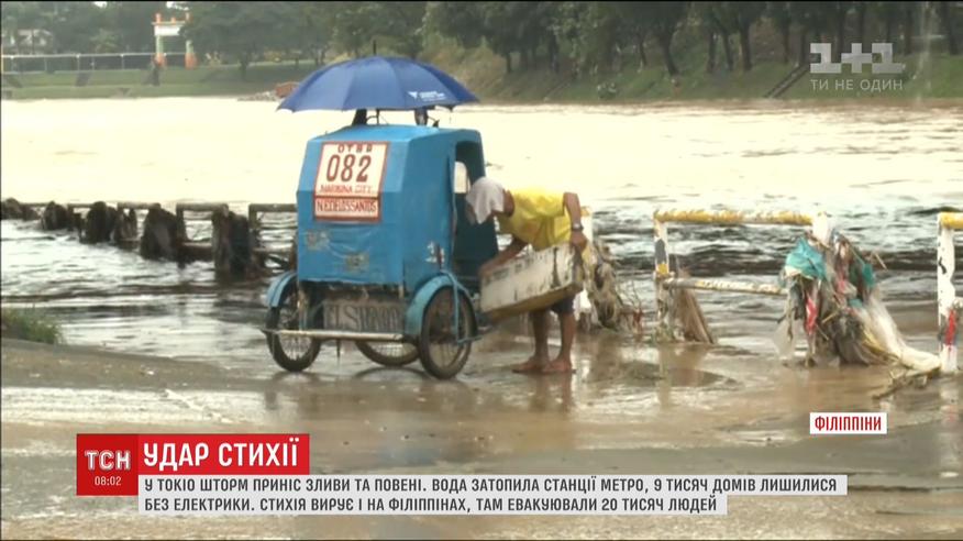 Вода затопила вулиці та станції метрополітену, сильний вітер буквально збивав перехожих з ніг. Майже 9 тисяч домівок нині - без електроенергії. Страшна стихія вирує і на Філіппінах. У місті Марікіна через масштабні повені 20 тисяч людей були змушені покинути домівки.