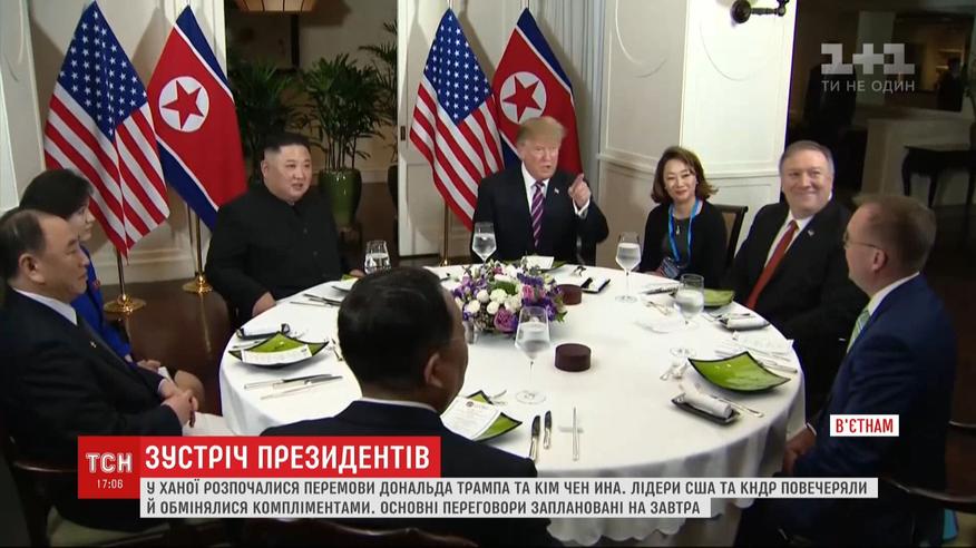 Лідери США та Північної Кореї обмінялися компліментами та посмакували вечерю у п'ятизірковому готелі у Ханої, В'єтнам. Це вже друга зустріч лідерів США та КНДР, після минулорічної, що відбулася у Сингапурі. За планом вони мають обговорити подальші кроки до ядерного роззброєння КНДР.