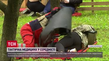 У Івано-Франківську запрацював тренувальний майданчик тактичної медицини. Просто неба імітували окопи на передовій. Тут навчають розпізнавати травми, надавати першу допомогу та евакуйовувати потерпілих. Цього разу на майданчику тренувалися працівники швидких та студенти медичного вишу