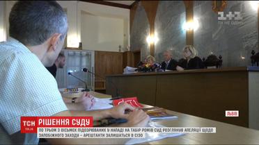 Суддів не розчулили. Два місяці за ґратами залишатимуться щонайменше троє з вісьмох підозрюваних у нападі на табір ромів та вбивстві одного з поселенців. Апеляційний суд Львівщини залишив без змін запобіжний захід та не відпустив під домашній арешт ані двох неповнолітніх підозрюваних, ані 20-річного Андрія Тичка.