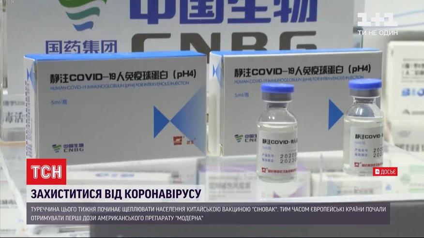 Вакцинуватиме громадян вже цього тижня ще одна країна Європи. Туреччина почне робити щеплення від коронавірусу китайською вакциною "Сіновак". Першу партію препарату країна отримала наприкінці грудня, і після тестування власними лабораторіями робитиме щеплення громадянам. Контракт на закупку саме такої вакцини підписала й українська влада. Ефективність препарату, за даними клінічних випробувань у Бразилії, становить 78%.