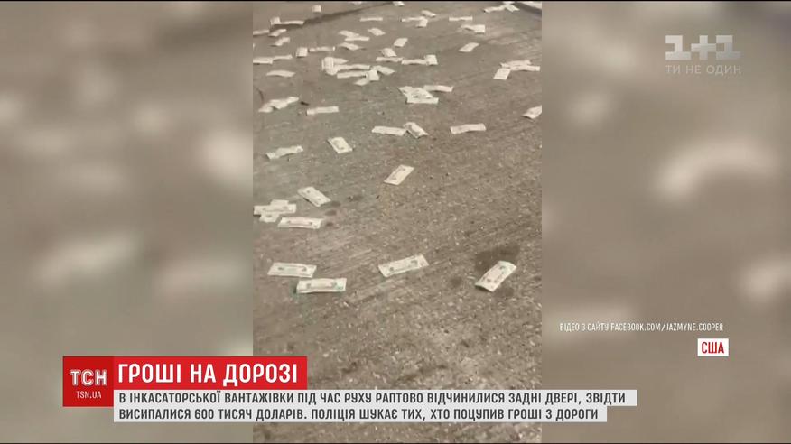 Під час руху задні двері броньованої машини раптово відчинилися і звідти попадали мішки з банкнотами. Висипалися майже 600 тисяч доларів. Водій вантажівки й гадки не мав, що встеляє трасу купюрами. Зупинився, тільки коли йому помахав інший водій. Тим часом перехожі почали збирати купюри.