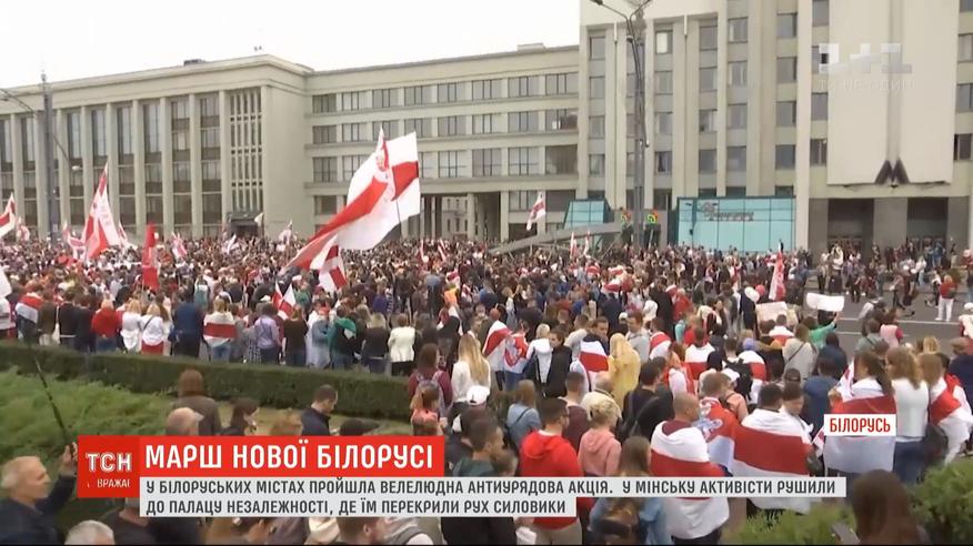Марш нової Білорусі і Лукашенко з автоматом. Напередодні у десятках міст Білорусі пройшла одна з найвелелюдніших акції проти фальсифікацій на президентських виборах. Лише у Мінську, за даними місцевих телеграм-каналів, вийшли на вулиці понад чверть мільйона людей. Активісти рушили до резиденції президента - Палацу незалежності. Однак дорогу їм там перекрили силовики. До оточеного мітингарями палацу прибув на гелікоптері і Олександр Лукашенко. Із гвинтокрила вийшов у бронежилеті та з автоматом у руках. Тим часом акції солідарності з білоруським народом організували у кількох американських та європейський містах. Детальніше – у сюжеті ТСН.