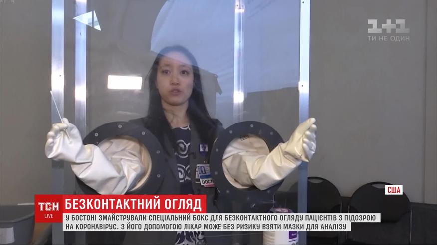 Кабінку для безконтактного огляду пацієнтів з підозрою на коронавірус, змайстрували в лікарні американського Бостона. Цей бокс стоїть у відділенні швидкої допомоги. У нього прозорі стінки та два віконця. З них стирчать гумові рукавички, в які лікар встромляє руки. І без ризику заразитися, бере в пацієнтів мазки для аналізу на коронавірус. Більше про коронавірус в Україні