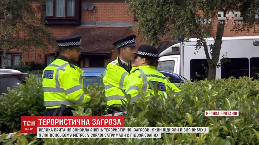 Його змінили з "критичного", який міг означати нові теракти, на "серйозний". Поліція країни продовжує розслідувати вибух, який пролунав у лондонській підземці у п'ятницю в ранкову годину пік. Поранень зазнали 30 людей, більшість травмованих шпиталізували з опіками. Правоохоронці затримали вже двох підозрюваних - їм 18 та 21 рік.