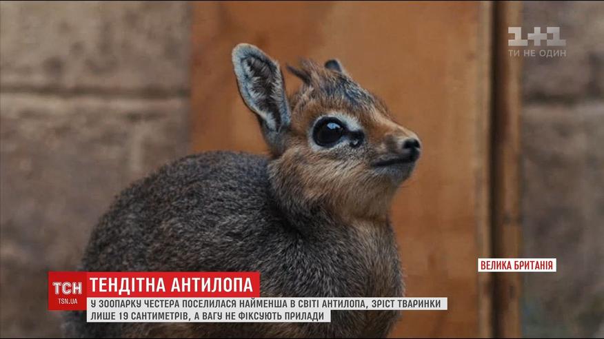 У Британському зоопарку поселилася найменша у світі антилопа. Маля на прізвисько Танос осиротіло при народженні, мати тваринки померла під час пологів. Опіку над крихіткою взяли працівники звіринцю. Вони годують дитинча із пляшечки п'ять разів на день, та особливо Танос полюбляє свіжі овочі та фрукти. За перший місяць життя тендітна тваринка виросла до 19 сантиметрів.
