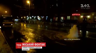 У центрі Херсона через роботу комунальників утворився фонтан на дорозі