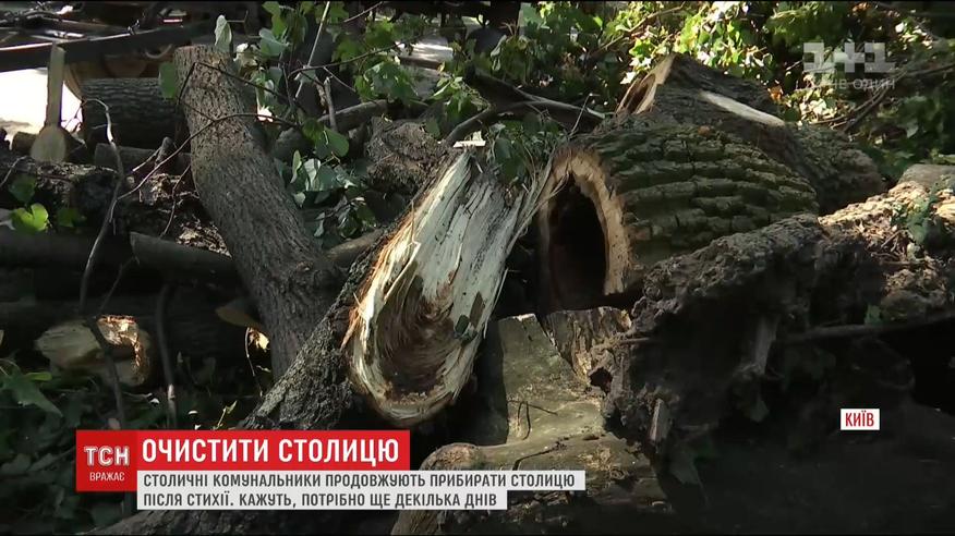 Київ і досі відмивається від учорашньої негоди. Аби відмити Хрещатик на поміч кинули комунальників зі столичних районів, яких оминула стихія. У Маріїнському парку шумно від тракторів, що вивозять поламані дерева. Кажуть, що прочищати від гілля шлях до ВР вони ще будуть днів зо три.
