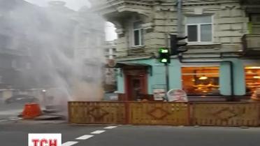 У середмісті столиці стовп води, що сягав третього поверху напередодні заблокував вихід відвідувачів з кондитерської. Фонтанувало більше години.