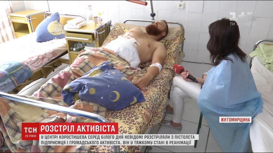 Досі у реанімації 29-річний Євген Дідковський. Підприємець гуляв з друзями у центральному парку Коростишева, коли під’їхали двоє людей на мотоциклі і впритул розстріляли його з пістолета. Він у тяжкому стані, але притомний.