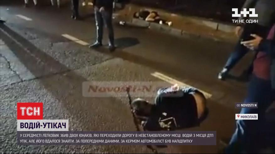 Збив двох хлопців і втік - аварія у середмісті Миколаєва. Двоє юнаків переходили дорогу у невстановленому місці, коли на них налетів легковик. Обидва пішоходи зазнали тяжких травм - водій навіть не зупинився. Як його затримали і чому тікав - розкаже ТСН.