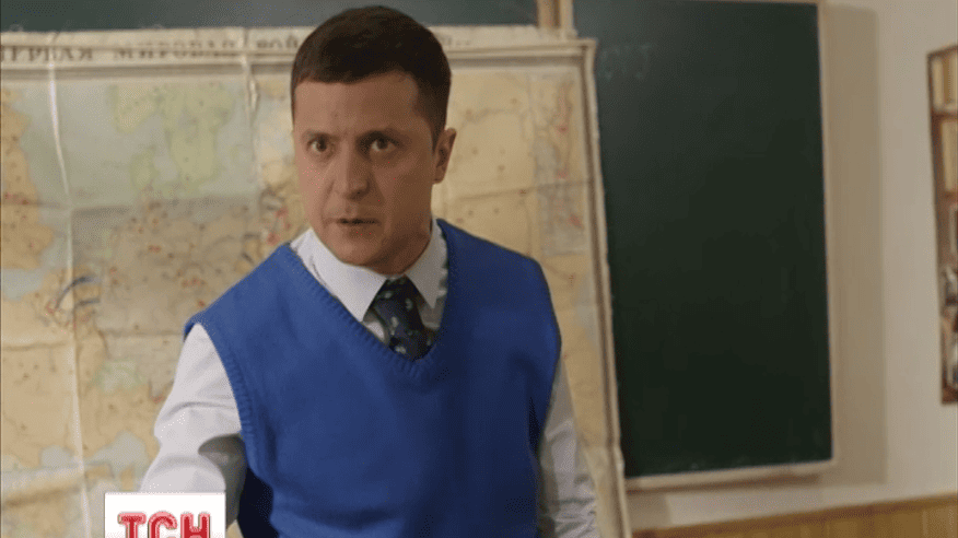У «день тиші» у центрі столиці такі були білі намети. Із фотографіями, з прізвищем та написами «Народний президент». 95 квартал рекламував новий серіал «Слуга народу». Це його спільний проект з телеканалом 1+1. Головний герой, якого грає Володимир Зеленський, це простий вчитель, який раптово став президентом України. Вже на цій посаді завзято змагається із старою системою влади, передусім, піклуючись про народ України.