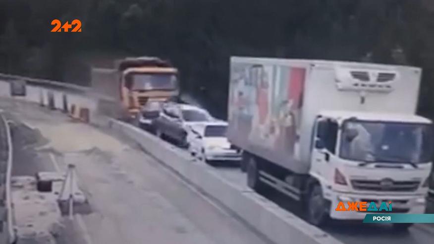 Мабуть одна з наймоторошніших аварій цього року на дорогах Росії сталася поблизу Челябінська. Загинули дві людини, а семеро у лікарнях. Шофер вантажівки запевняє, що у нього відмовили гальма. Однак за однією з версій слідства він просто зловив ґаву. На даний момент чоловік під арештом. Повні випуски дивіться на 1+1 video