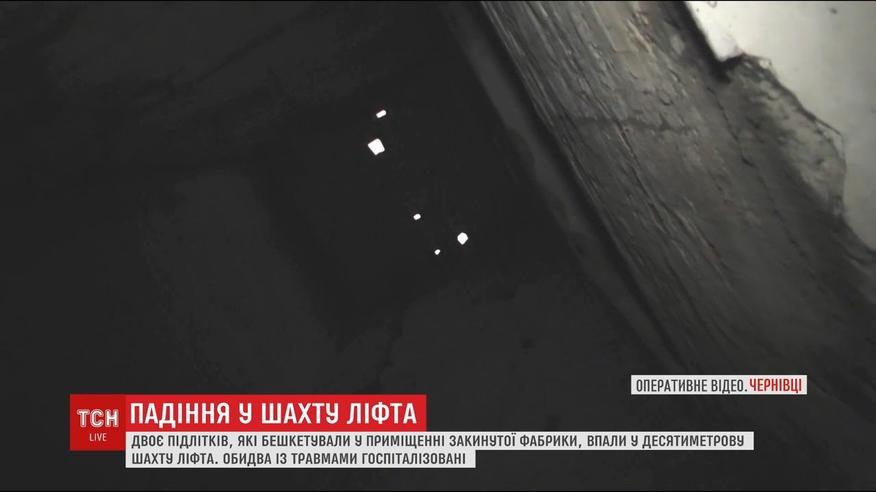 Хлопці 15-ти років бешкетували у приміщенні закинутої фабрики, спускалися із даху. У темряві не помітили шахту ліфта та впали в десятиметровий бетонний колодязь. Обидва серйозно постраждали. Один зламав передпліччя, у іншого - політравма. У поліції кажуть, що наслідки падіння могли бути фатальними для обох. Впали вони на бетонну поверхню, з якої стирчить арматура.
