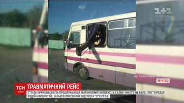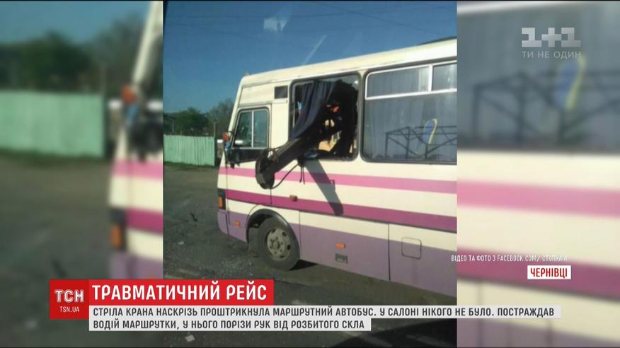 У Чернівцях кран наскрізь проштрикнув маршрутку. Сталося це вранці. Людей у салоні не було, водій лише збирався в рейс. Він виїхав із гаража. У той самий час автокран здавав назад на будмайданчик. Його стріла опинилася на проїжджій частині і маршрутка на повному ходу практично наштрикнулася на неї. Кран розбив лобове скло, і стріла вийшла позаду водія - чоловік дивом уцілів, втім у нього численні порізи рук від розбитого скла.