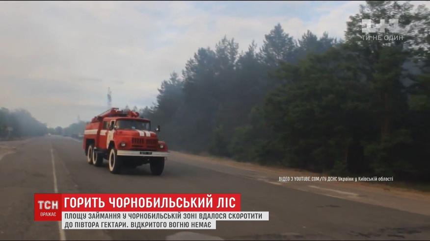 Повністю ліквідувати пожежу рятувальникам не вдається. За останніми даними, площа займання зменшилася до півтора гектара. Відкритого вогню немає, тліють пеньки, повалені дерева та трава. Дим, що підіймається в гору, вітер несе у бік Києва. За прогнозами синоптиків свій напрямок він не змінить до завтра, щоправда сьогодні сила вітру стане слабшою.