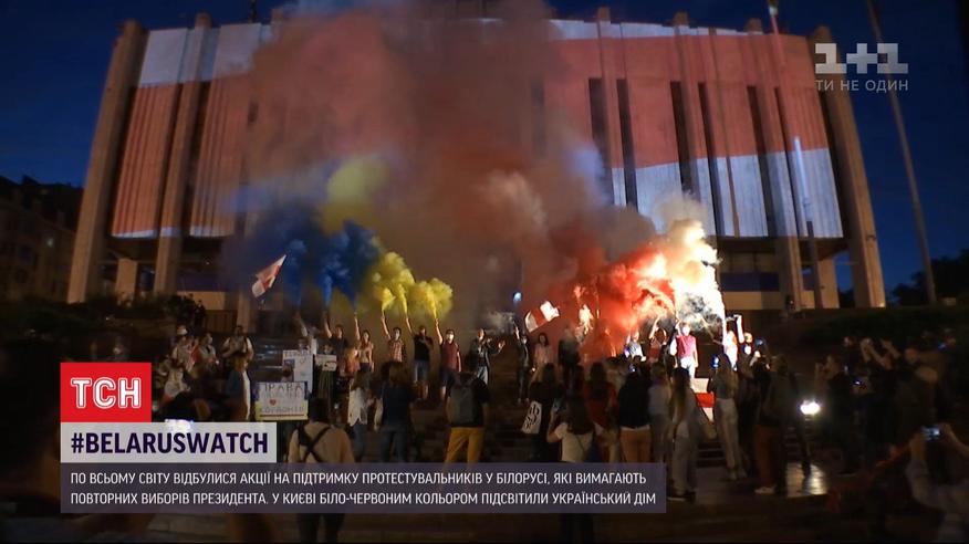 У десятках міст по всьому світу пройшли акції на підтримку білорусів, які борються проти режиму Лукашенка. У Києві активісти запалили фаєри у кольорах українського та білоруського прапорів, після чого підсвітили будівлю Українського дому червоно-білим світлом. У Житомирі зо три десятки людей прийшли на майдан Соборний з плакатами "Живе Белорусь". Акція солідарності з сусіднім народом відбулася і у Львові. На площі Ринок учасники розгорнули велетенський десятиметровий біло-червоно-білий стяг і вимагали від української влади визнати вибори у Білорусі сфальшованими.