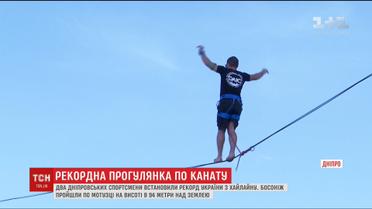 У Дніпрі двоє спортсменів пройшли по мотузці на висоті 94 метри