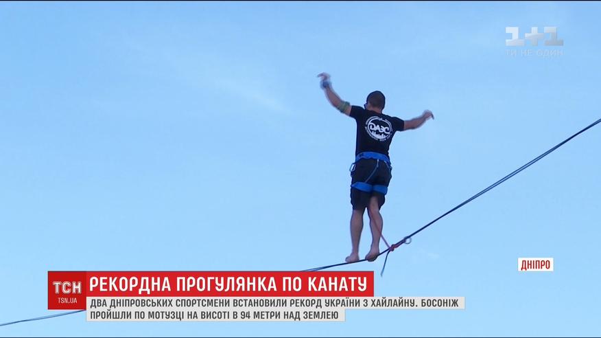 Канат натягнули між дахами двох веж 28-поверхових будинків у середмісті Дніпра. Станіслав Панюта та Костянтин Карноза пройшли без падінь з однієї будівлі до іншої. Загальна довжина стропи – 63 метри. Рекорд уже зафіксувала Дніпропетровська асоціація екстремальних видів спорту.